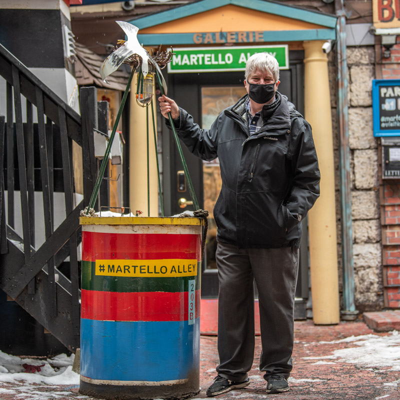 Here we go, my last semester in the photojournalism program at Loyalist College started this week. Yesterday was our first assignment of the semester where we had to go out in the community and capture an image of a small business owner, outside in front of their business and wearing a mask. These restrictions were given to us to make sure that we are well within the provincial guidelines imposed by the pandemic but also to more closely represent the current reality. My submission below is of a very friendly and positive David Dossett, owner of Martello Alley, a small shop in downtown Kingston that sells local art.